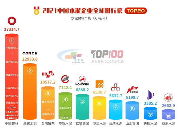 “2021中國水泥企業(yè)全球排行榜”:海外產(chǎn)能加持,紅獅集團(tuán)超越華潤水泥位居第五