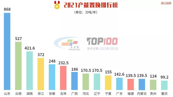 產(chǎn)能置換排行榜:全年置換熟料產(chǎn)能3995.9萬噸 三年來最低
