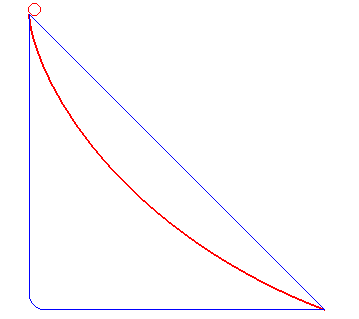 如上圖所示,紅色的這條線是最快的,這就是最速曲線。
