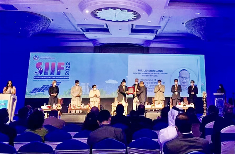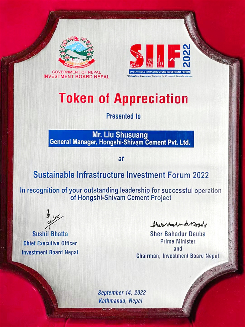 9月14日,正值中國(guó)全國(guó)人大委員長(zhǎng)栗戰(zhàn)書訪問(wèn)尼泊爾之際,由尼投資委員會(huì)主辦“2022年可持續(xù)基礎(chǔ)設(shè)施投資論壇”在加德滿都開(kāi)幕。會(huì)上,尼泊爾總理德烏帕為紅獅希望水泥有限公司總經(jīng)理劉漱光頒授“杰出領(lǐng)導(dǎo)獎(jiǎng)”,這是德烏帕總理就職二年第三次為紅獅希望頒獎(jiǎng)。