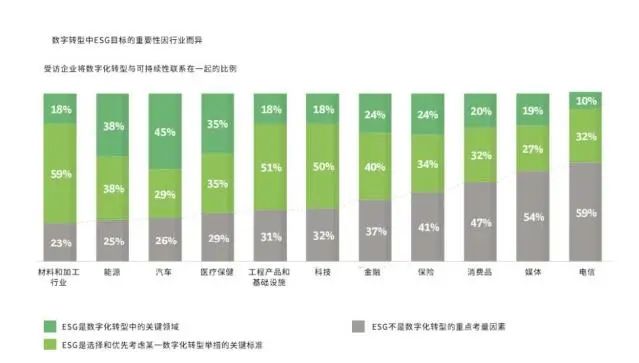 BCG(波士頓咨詢集團(tuán))的《2021年全球數(shù)字化轉(zhuǎn)型調(diào)查》報(bào)告顯示,ESG目標(biāo)開始成為部分行業(yè)在數(shù)字化轉(zhuǎn)型中優(yōu)先考慮的主要因素,最重點(diǎn)關(guān)注ESG目標(biāo)的是材料和加工行業(yè)、汽車、能源等,其中許多是能源密集型的行業(yè),因此減少排放、達(dá)成可持續(xù)綠色發(fā)展成為了它們數(shù)字化轉(zhuǎn)型焦點(diǎn)。