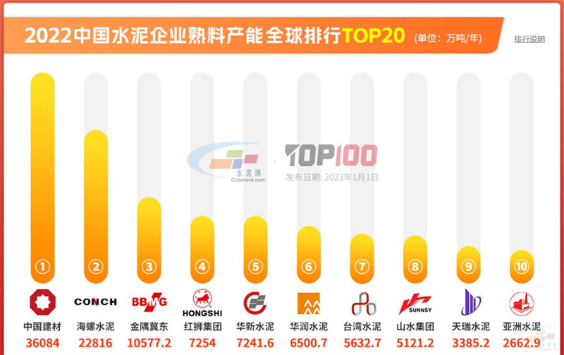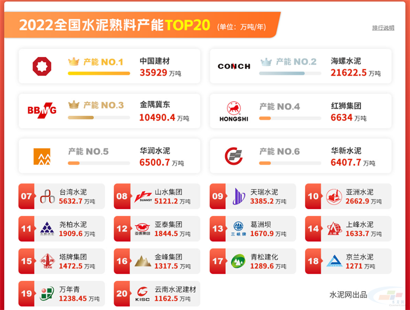 重磅!“2022中國(guó)水泥熟料產(chǎn)能百?gòu)?qiáng)榜”震撼發(fā)布!