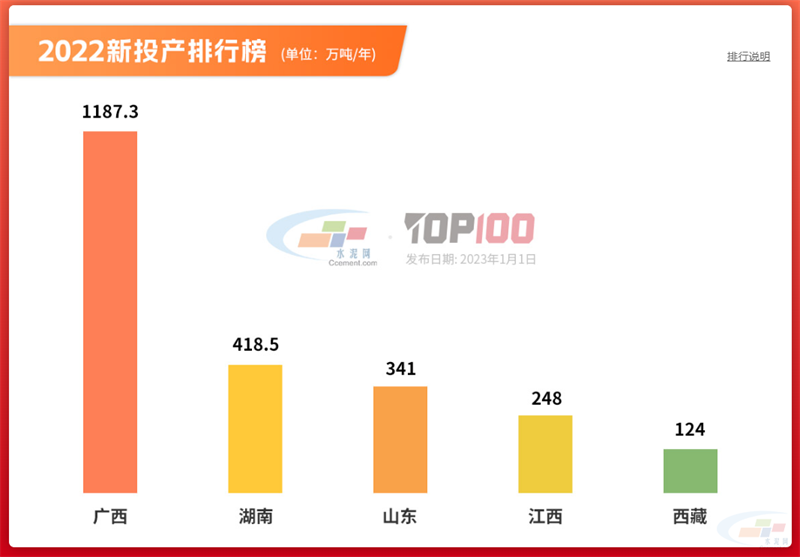 “2022新投產(chǎn)排行榜”:全國(guó)新投產(chǎn)產(chǎn)能2318.8萬(wàn)噸,廣西獨(dú)占1187.3萬(wàn)噸高居榜首
