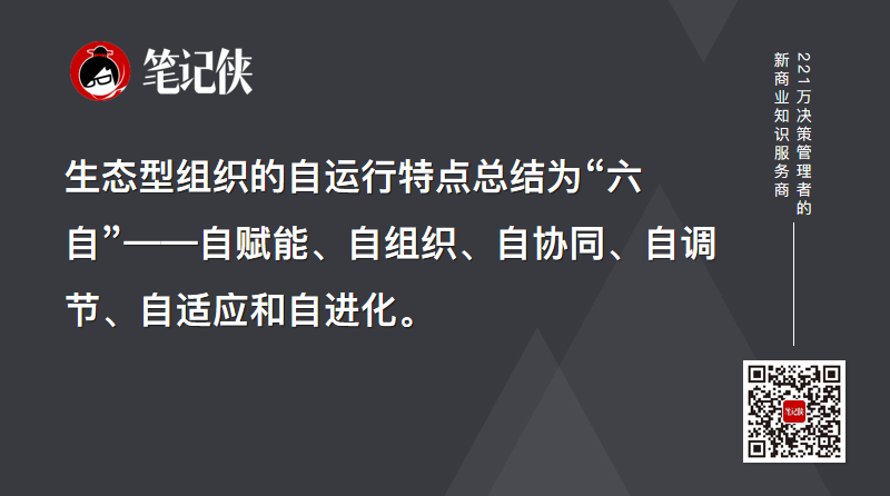 我今天和大家分享的主題是建立生態(tài)思維,推動(dòng)組織進(jìn)化。今天這樣一個(gè)烏卡時(shí)代,我們的組織面臨什么樣的挑戰(zhàn)?這個(gè)時(shí)代充滿了不確定性、易變性、復(fù)雜性和模糊性,我們面臨很多挑戰(zhàn),比如我們經(jīng)常說的黑天鵝、灰犀牛、瘋狗浪事件。上午一位嘉賓分享的“瘋狗浪”很符合當(dāng)下我們所處的極其不確定、極其動(dòng)蕩、困難的時(shí)代。作為企業(yè)經(jīng)營管理者,你可能會(huì)面臨很多困難,如果不加以注意,這些困難的疊加就會(huì)帶來滅頂之災(zāi)。在企業(yè)組織形式方面,以往的組織形式誕生于、適應(yīng)于工業(yè)生產(chǎn)時(shí)期,追求規(guī)模和效率。在新的時(shí)代,組織形式能否適應(yīng)?會(huì)遇到哪些挑戰(zhàn)?同時(shí),我們知道數(shù)字經(jīng)濟(jì)這幾年得到了快速發(fā)展。據(jù)中國信通院的統(tǒng)計(jì),我國的數(shù)字經(jīng)濟(jì)總量在30萬億左右,占GDP三分之一,對(duì)經(jīng)濟(jì)的貢獻(xiàn)率約70%。數(shù)字經(jīng)濟(jì)得到了極大的發(fā)展,那么數(shù)字成為生產(chǎn)要素之后,會(huì)對(duì)我們的組織和管理帶來什么樣的沖擊?是一種補(bǔ)充?還是一種范式的顛覆?我們有待觀察,但是沖擊是不言而喻的。在營銷領(lǐng)域、產(chǎn)品領(lǐng)域、運(yùn)營領(lǐng)域、創(chuàng)新領(lǐng)域,我們都感受到了數(shù)字成為生產(chǎn)要素之后給企業(yè)管理帶來的影響。比如我們?cè)瓉淼年P(guān)注重點(diǎn)是產(chǎn)品、是生產(chǎn)流程;在數(shù)字經(jīng)濟(jì)下,我們的關(guān)注重點(diǎn)是數(shù)據(jù)、是信息流。原來管理的中心是產(chǎn)品,現(xiàn)在則是經(jīng)營客戶,以客戶為中心;以往的經(jīng)營活動(dòng)是線性的,現(xiàn)在是非線性的、跨階段的;以往的決策是靠個(gè)人經(jīng)驗(yàn),現(xiàn)在可以依靠數(shù)據(jù),可以較好做出預(yù)測;原來的目標(biāo)是提升效率,現(xiàn)在更強(qiáng)調(diào)提升價(jià)值。因此,在數(shù)字經(jīng)濟(jì)下,我們的組織也會(huì)面臨一些新的挑戰(zhàn)。那么,現(xiàn)有的企業(yè)組織形式會(huì)面臨哪些挑戰(zhàn)?如何進(jìn)化組織以應(yīng)對(duì)新的挑戰(zhàn)?不確定的環(huán)境下疊加數(shù)字經(jīng)濟(jì)的快速發(fā)展,會(huì)給組織進(jìn)化帶來怎樣的挑戰(zhàn)?我們知道現(xiàn)有的企業(yè)組織形式是基于科層制的,在二十年代初期,馬克思·韋伯提出科層制,后來經(jīng)過發(fā)展,逐漸形成了現(xiàn)在的組織理論。這個(gè)理論指導(dǎo)下的組織,是基于大規(guī)模生產(chǎn)的組織,強(qiáng)調(diào)穩(wěn)定性和效率。在穩(wěn)定的情況下,它有效率優(yōu)勢;但在不確定的情況下,它就會(huì)面臨很大的挑戰(zhàn),比如效率降低,影響信息的傳遞,會(huì)產(chǎn)生官僚,會(huì)阻礙創(chuàng)新等等。在這種挑戰(zhàn)下,有沒有其他的組織形式能給我們的組織進(jìn)化帶來一些新啟示?經(jīng)過研究,我們可以從自然界生物組織里找到了一些靈感。自然生物界存在了幾十億年的時(shí)間,有的物種,比如螞蟻、蜜蜂,已經(jīng)存在了幾億年時(shí)間,它們發(fā)展成長得很好。甚至新冠病毒也可以給我們帶來一些思考。在三年的時(shí)間里它表現(xiàn)得很頑強(qiáng),不斷進(jìn)化,我們消滅不它,只能接受和它的共存。從新冠病毒的角度來說,它進(jìn)化發(fā)展的很好。在這個(gè)病毒生存的背后,它的組織是如何發(fā)展的?是怎么運(yùn)作的?在生態(tài)學(xué)領(lǐng)域,種群生態(tài)學(xué)研究重點(diǎn)是種內(nèi)關(guān)系、種群之間關(guān)系以及種群和環(huán)境之間的關(guān)系。比如對(duì)于螞蟻和蜜蜂,沒有人指揮它們每個(gè)個(gè)體的行為、任務(wù),但它們就是會(huì)很高效地完成任務(wù),這是怎么做到的呢?生態(tài)型組織相對(duì)于科層制組織有一個(gè)很重要的特點(diǎn),就是“自”運(yùn)行,即強(qiáng)調(diào)個(gè)體自主意識(shí)、自我決策和自我激勵(lì)。它不是由上而下的指揮,而是由下而上的自主行動(dòng),從而達(dá)到很好的目標(biāo)效果。當(dāng)然這里有一個(gè)前提,就是它們有著共同的基因,類似于我們經(jīng)常說的共同的“愿景、使命和價(jià)值觀”。同時(shí),我們也觀察到在企業(yè)實(shí)踐當(dāng)中,一些企業(yè)比如海爾“小微組織”、華為“鐵三角”、美的“789工程”等,都從某種程度上具有一些自運(yùn)行的特征。因此,在這些生態(tài)理論和商業(yè)實(shí)踐基礎(chǔ)之上,我們跨界提出“生態(tài)型組織”的概念,倡導(dǎo)打造生態(tài)型組織以應(yīng)對(duì)新的挑戰(zhàn)。我們把生態(tài)型組織的自運(yùn)行特點(diǎn)總結(jié)為“六自”——自賦能、自組織、自協(xié)同、自調(diào)節(jié)、自適應(yīng)和自進(jìn)化。傳統(tǒng)科層制組織的各種資源,采用的是由上而下的分配方式,被動(dòng)獲得;生態(tài)型組織自賦能的方式是搭建賦能平臺(tái),建立“資源池”,根據(jù)需求自主申請(qǐng),匹配獲得,資源和組織行為目標(biāo)能夠很好的匹配。因此,生態(tài)型組織的第一個(gè)特點(diǎn),就是要建立自賦能的機(jī)制。科層制組織是中心化的被動(dòng)組織,行為上是自上而下的指揮和被動(dòng)的接受執(z