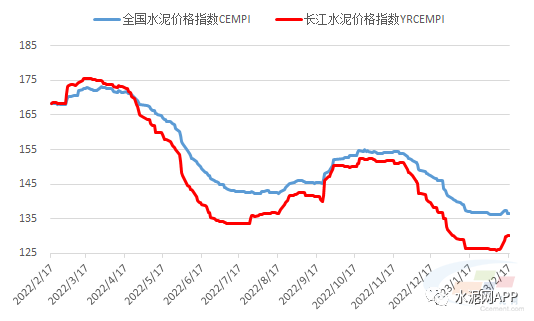 上周五,長(zhǎng)江流域水泥價(jià)格指數(shù)(YRCEMPI)報(bào)收130.16點(diǎn),環(huán)比上周上漲2.94%。