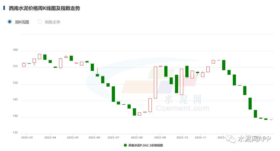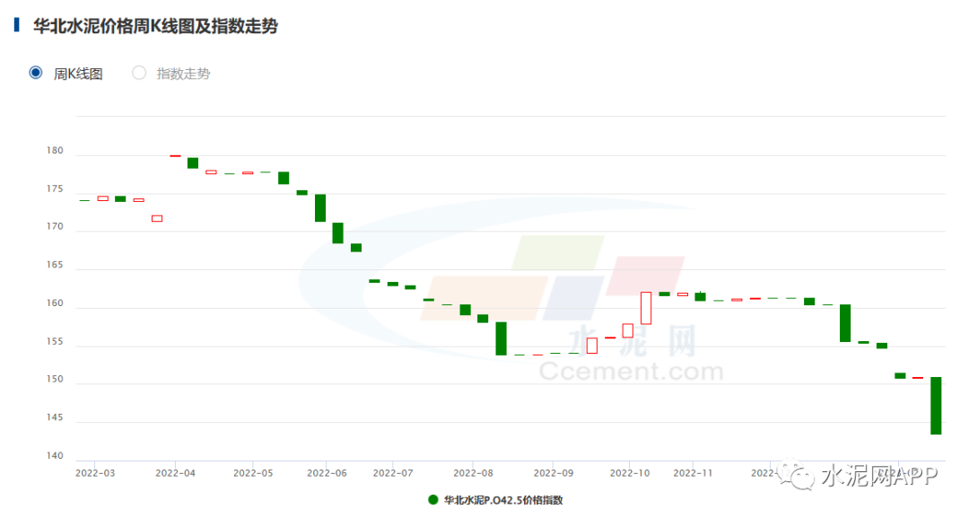 華北地區(qū)受冬儲(chǔ)影響,水泥價(jià)格下跌4.95%;