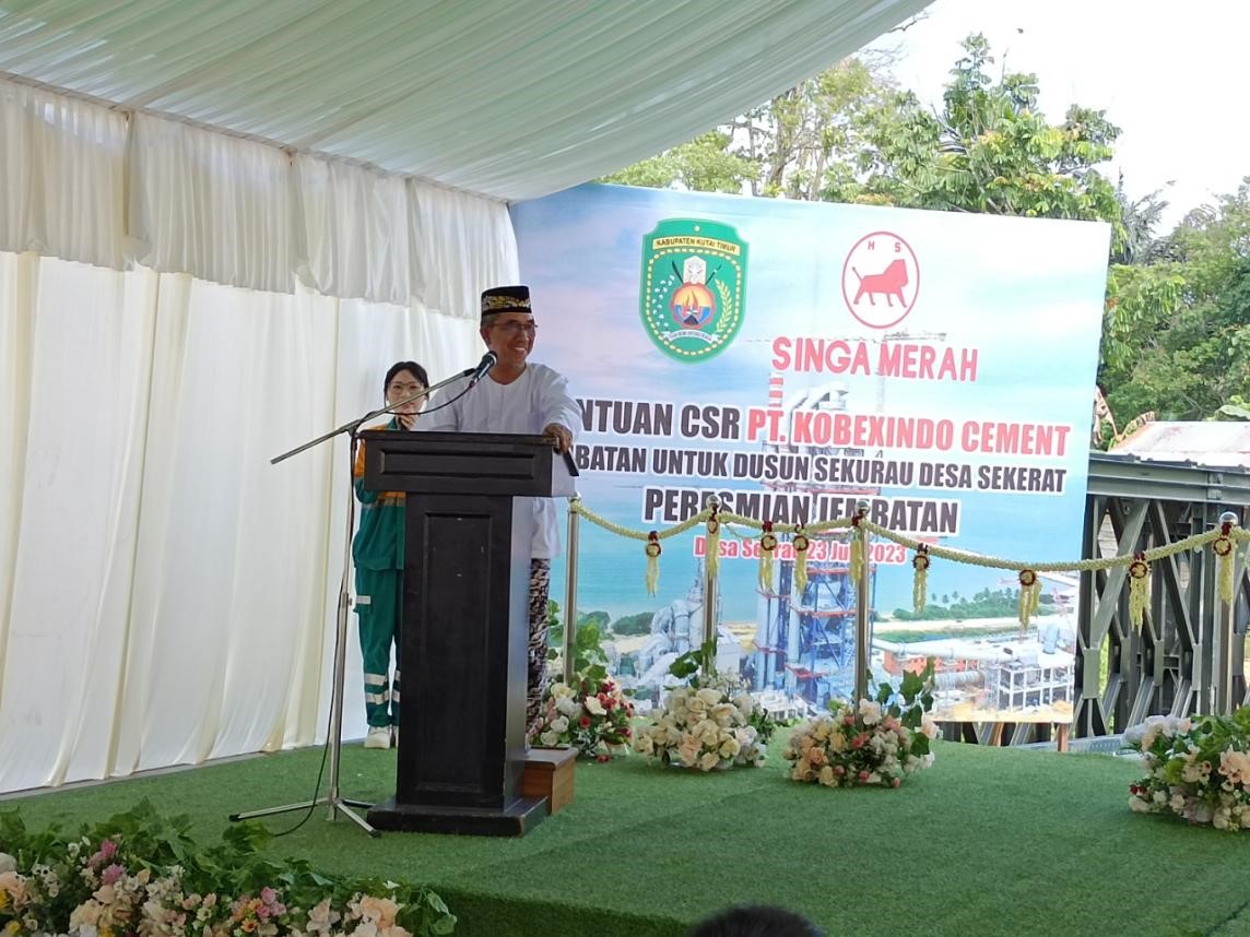 7月23日下午,印尼東加紅獅捐建Sekerat村鋼橋舉行通車剪彩儀式,東庫臺縣蘇丹王阿吉?穆罕默德?阿里費、縣長阿迪安夏?蘇來曼一行40余人參加儀式。