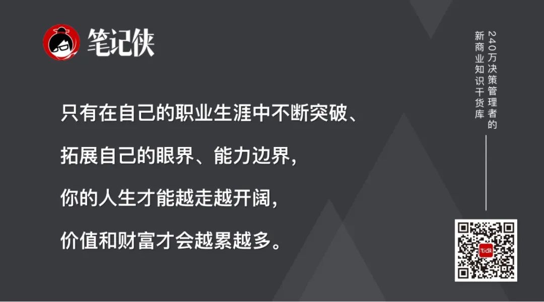 對于個人來說也是,只有在自己的職業(yè)生涯中不斷突破、拓展自己的眼界、能力邊界,你的人生才能越走越開闊,價值和財富才會越累越多。