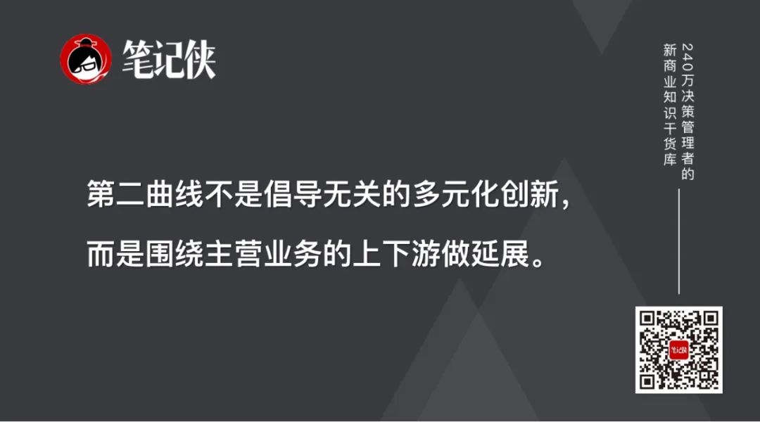 所以,第二曲線不是倡導無關的多元化創(chuàng)新,而是圍繞主營業(yè)務的上下游做延展。