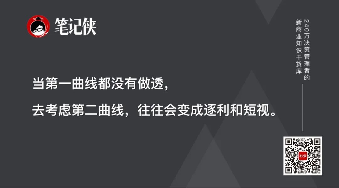 所以,當?shù)谝磺€都沒有做透,去考慮第二曲線,往往會變成逐利和短視。
