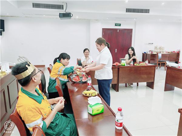 活動現(xiàn)場擺滿了西瓜、葡萄、棗子等水果,伴隨著歡快的生日歌伴奏,到場的21名壽星同唱生日歌,同品生日蛋糕,分享生活中的趣事,工作中的經(jīng)驗(yàn),祝福自己的同時,也給同是壽星的同事們送上了暖心的祝福。